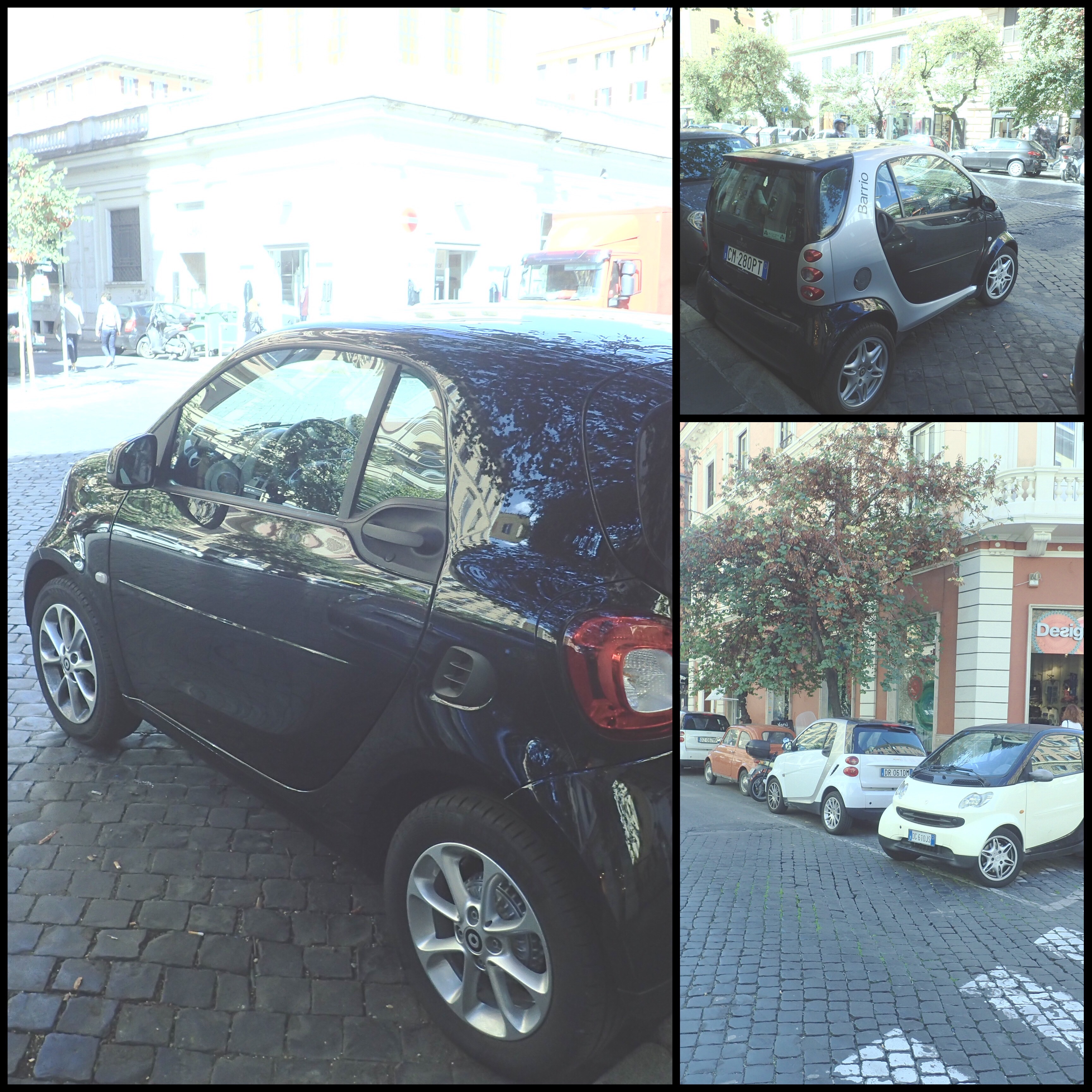 And like the best kind of old friend, Rome still surprises & delights us. This trip, as recent converts to the ease and economy of Smart cars, we were amazed at the proliferation of this little gem every where. We started counting how many we would see parked in one block — 3, 4 or more not uncommon. And given the parking and narrow streets in Rome, home of the well-dressed man on Vespa, not a surprise.