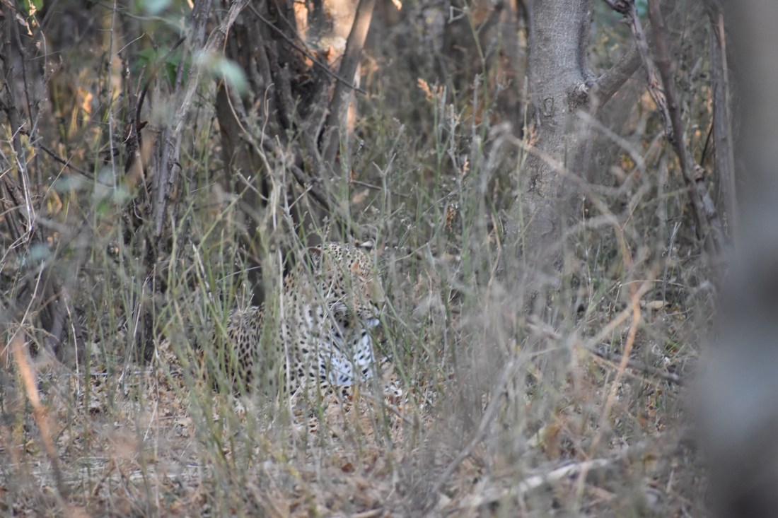 But It was the big cats which brought out Mundoga’s extraordinary skills. The second day we were at the Rukemechi camp on the morning drive, another guide radioed that he had located a leopard nearby. Mundoga sped to the location in “Ferrari Safari” mode, as he put it, and when we got there the leopard was barely visible in the undergrowth.