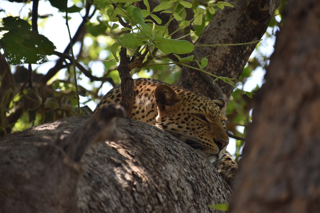 On a very good hunch based on years of experience, he took us back to the same spot later to find the leopard clearly visible on branch in a very large acacia tree.