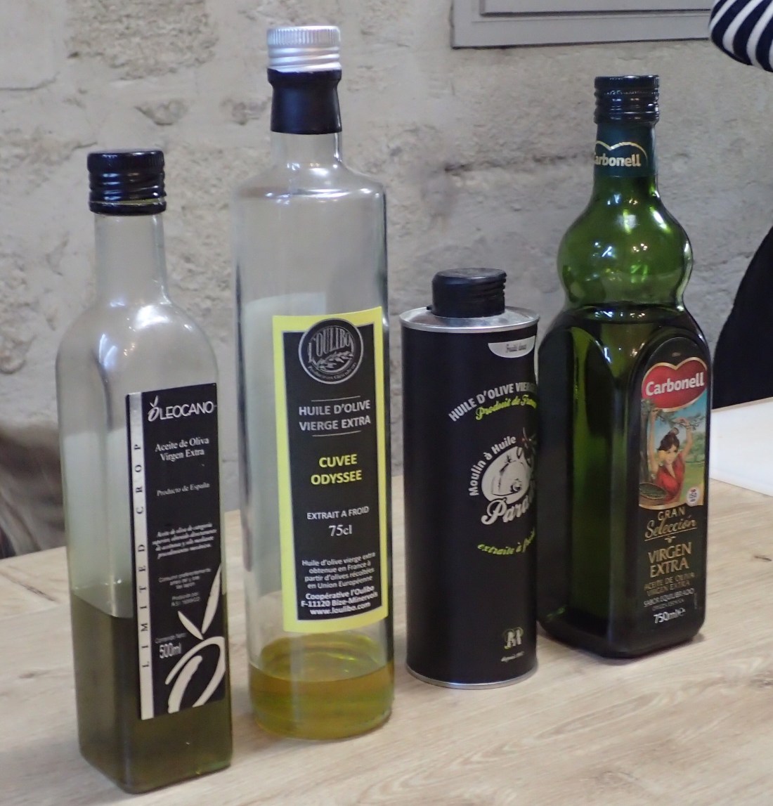 A question about her favorite olive oil led to an impromptu tasting. She brought out four bottles. Poured a bit of each in small bowls and asked us to taste. The flavors ranged from light and subtle to peppery or vegetal. And prices ranged from 7€ to 15€. Her advice? Buy to best you can for cooking (be a bit extravagant) and a little better for finishing. And the olive oil tasting led to an olive tasting and a lecture about those canned black olives that kids put on the end of the fingers. They may be forever banished from our house after Petra explained how they are made — picked unripened & very green, pitted, bathed in lye and soaked in rusty water! Yes, rusty water, to turn them black. Delightful, heh!? No more black olives on my pizzas!