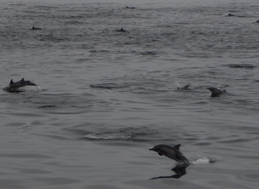 Later we spotted a huge group of common dolphins, probably 100 or more of the creatures, in a fairly tight knot, leaping and diving in a feeding frenzy. The captain piloted the boat through the group three times. Each time, many of the dolphins left their feeding to play with our boat. We all wandered down to dinner that night grinning. You just can’t help but react with a smile to the sheer exuberance of the dolphins.