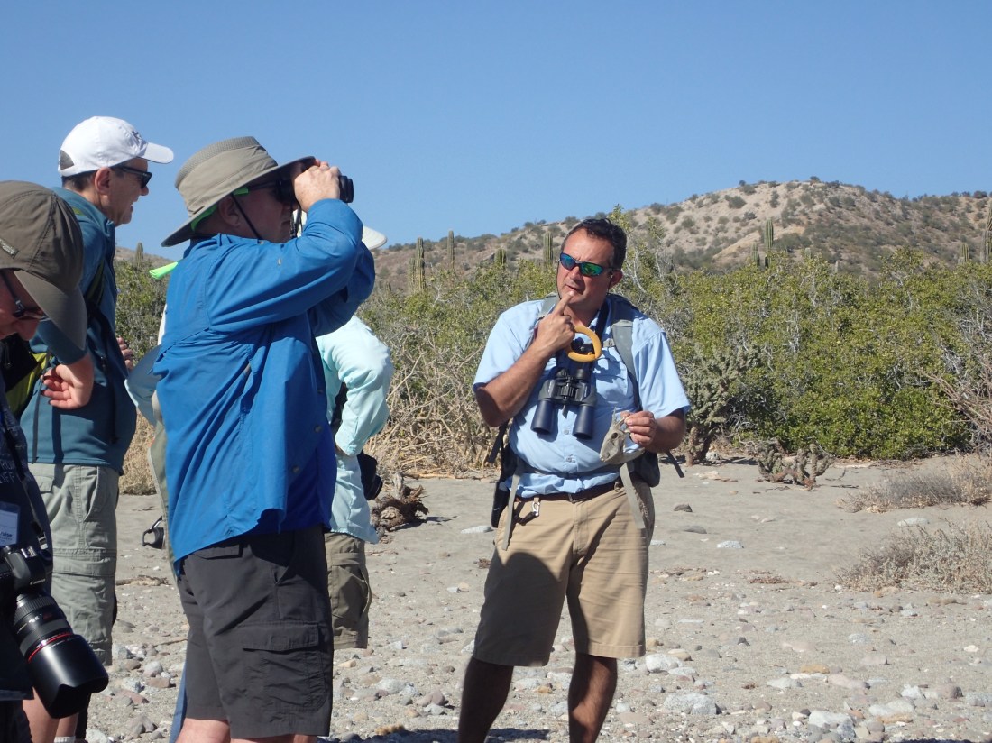What do you get on a small boat adventure cruise that’s different? For starters, you travel small. Even though there were 60 passengers on our latest cruise, our outings ranged from nine to twelve people with one or two expert guides. The guides could point out the Cardon cactus and explains the differences from its cousin the Saguaro. They explained why the elephant bush grew where it did. A fish skeleton on the shoreline could be identified. This was not a march through the Baja desert accompanied by a lecture, but an exploration of objects either the guide or one of us found on the beach or desert around us. A little bit of biology and a little bit of geology with some natural history thrown in. With every found object, those interested circled around as the guide pointed out the details. Others continued their search for the next object. Everyone’s curiosity was satisfied. It is the difference between a small seminar class and a huge lecture hall.