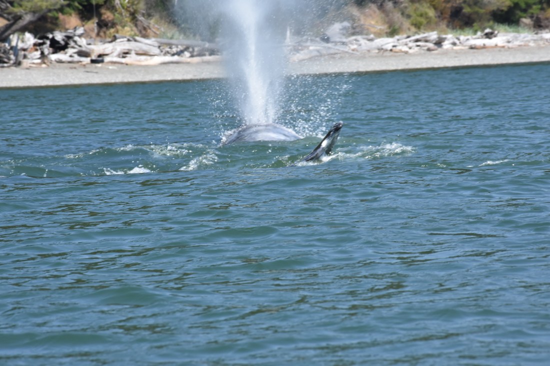 When we get downwind, we can smell it’s fishing breath as it blows. But we can also hear a soft intake of breath after it’s blown — if the breathing of a 30 ton creature can ever be called soft.
