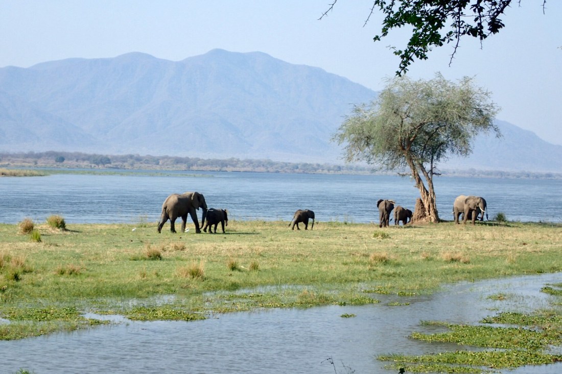 By 7:30 on our first day we could have left Africa having “bagged” most of the major animals, except for the lions and leopard. There would be no rhinos—we were told they had been removed from this area to protect them from poachers. Around 9:30 Mundoga stopped along the banks of the Zambezi, set up a folding table, placed a cloth on top, began to make fresh tea or French press coffee for us, served with a shortbread cookie while we watched the hippos in the river. Across the way we could see Zambia and its mountains.